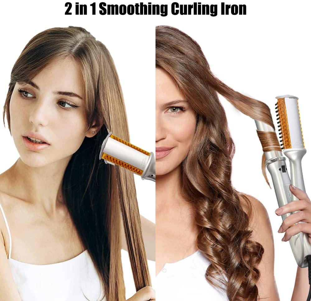 2 in 1 Hair Straightener and Curler, Freestyle Flat Iron, Heat Resistant Hair Brush Straightener for Thick Hair, 3 Adjustable Modes, for Women, Girls