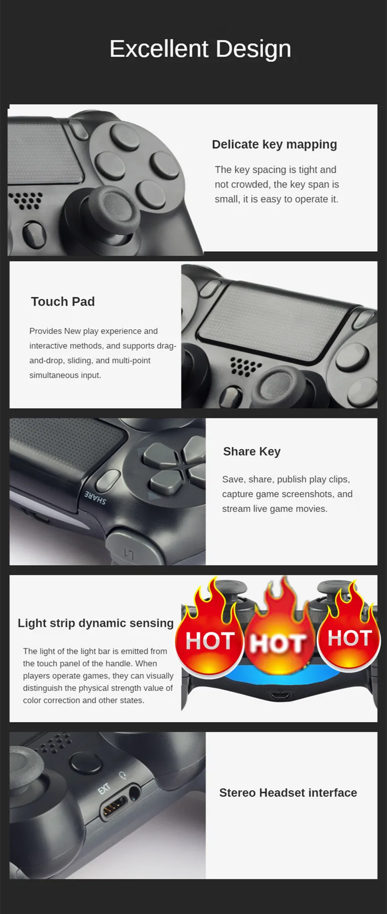 24Colors Bluetooth Double Vibration Controller For PS4 PS3 Wireless Gamepad Joystick For PS4 Games Console USB 6Axis Joypad