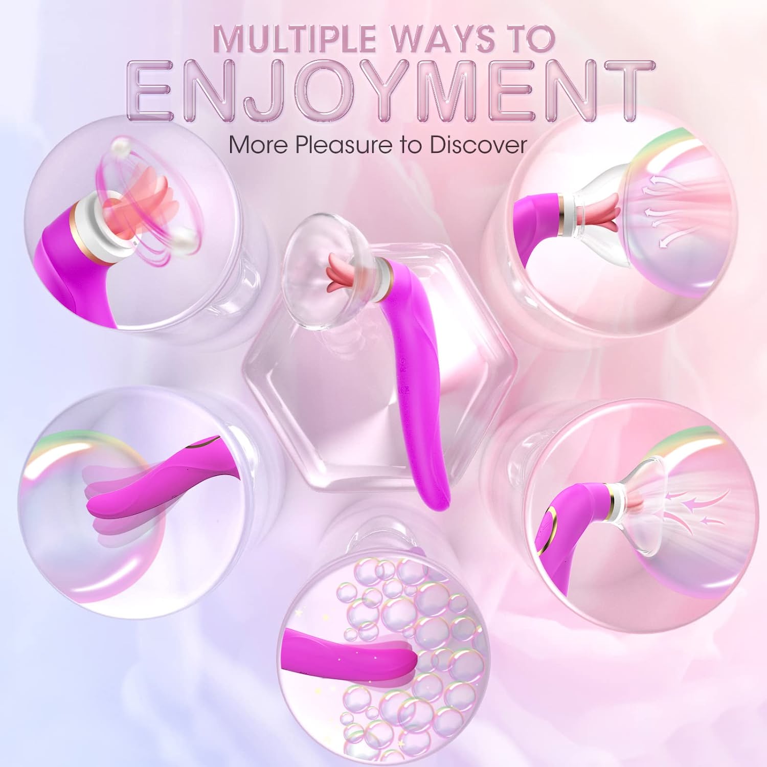 - Double Stimulation 3 IN 1-- The sex toy has 8 different sucking patterns, 5 licking modes and 10 vibrating modes, the tongue vibrator encircling your “petal” and targeting it for intense stimulation, and tongue with gentle to wild movements and a palpable sense of touch is a wonderful organ that can provide orgasms you never imagined.