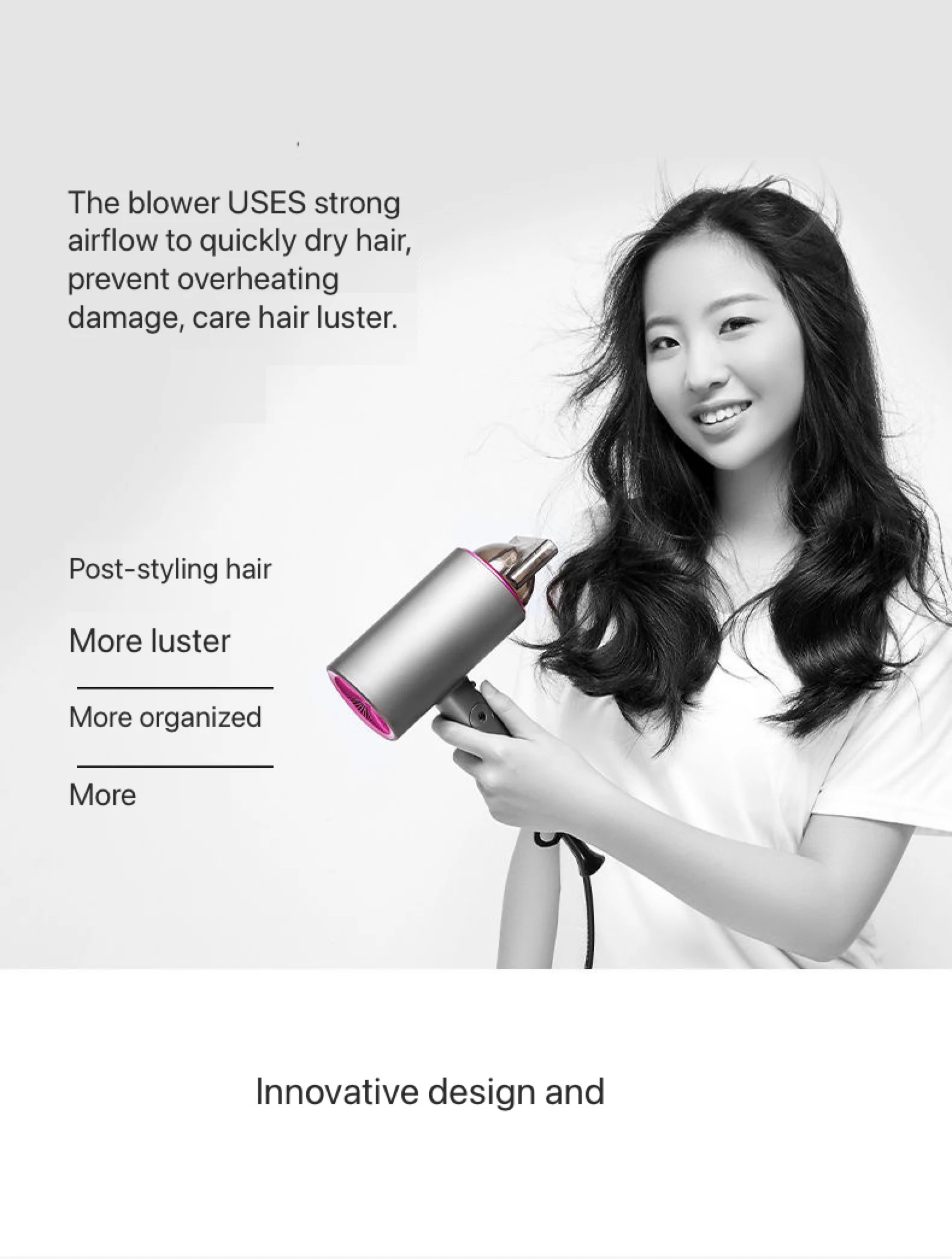 Negative Ion Hair Dryer 1800W Professional Blow Dryer Powerful and Fast Hair Dryer XaoMi Hairdressing Equipment and Tools