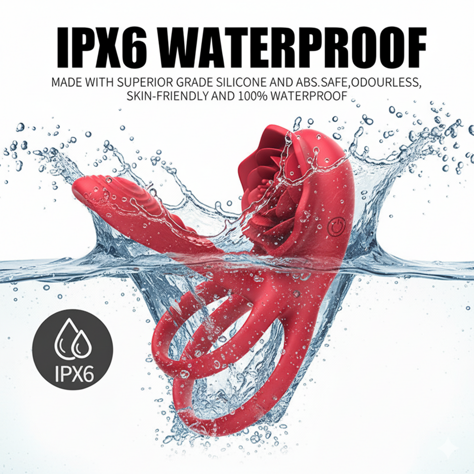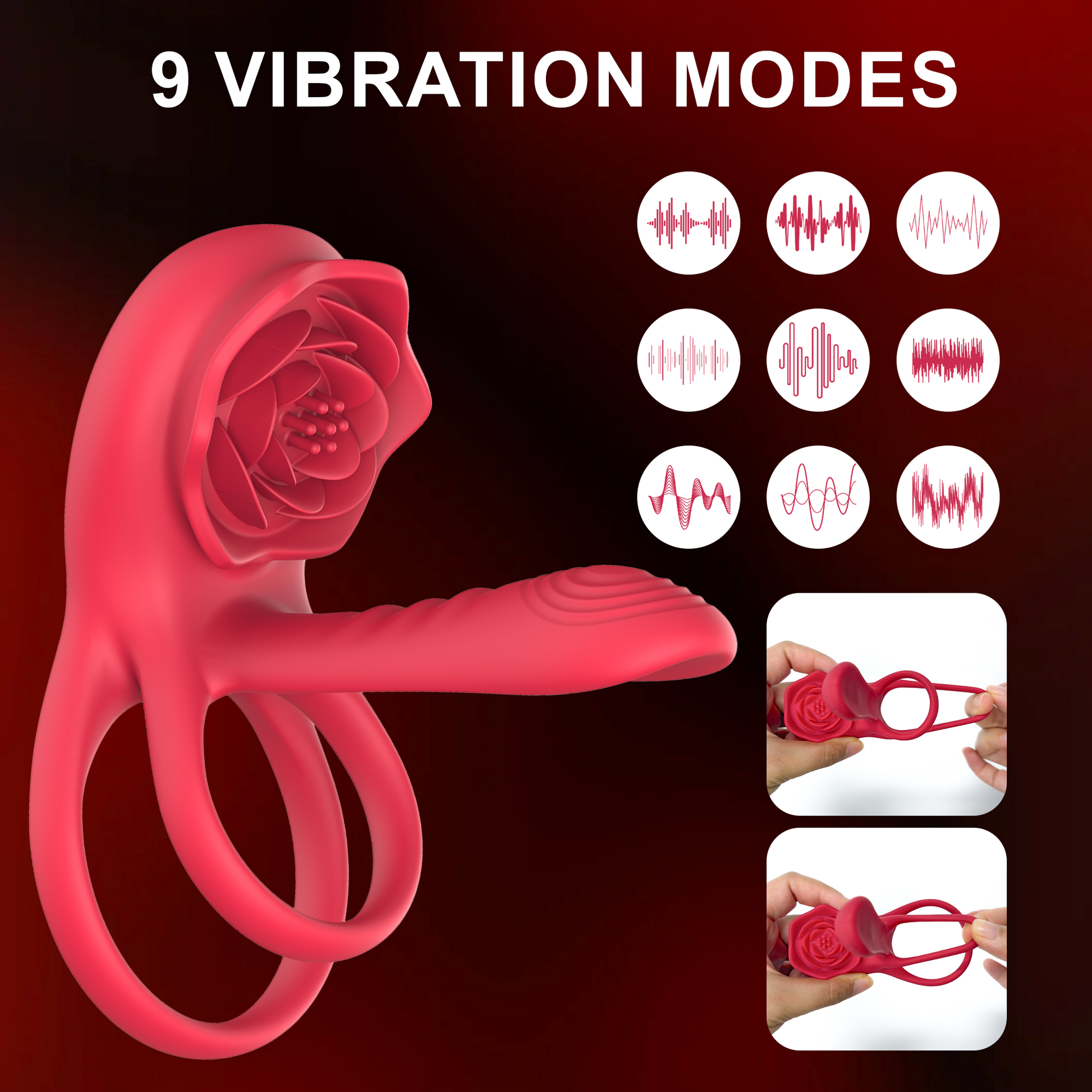 Rose Toy Vibrator Lock Rings Nipple Clitoris Stimulator Vibrators Sex Toys for Couple Delay Lick Vagina Toys with Penis Ring - Red
