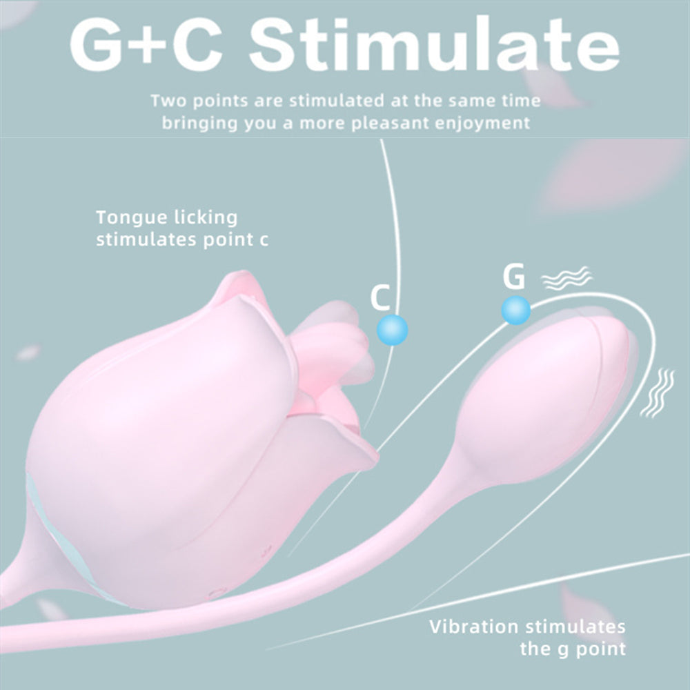 Female 2 in 1 Rose Vibrator 9 Kinds of Vibrations & 9 Kinds of licking G-spot Personal Massager Adult Sex Toys for Women Couples