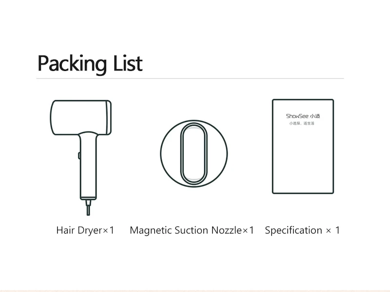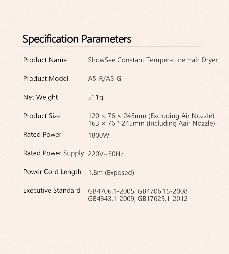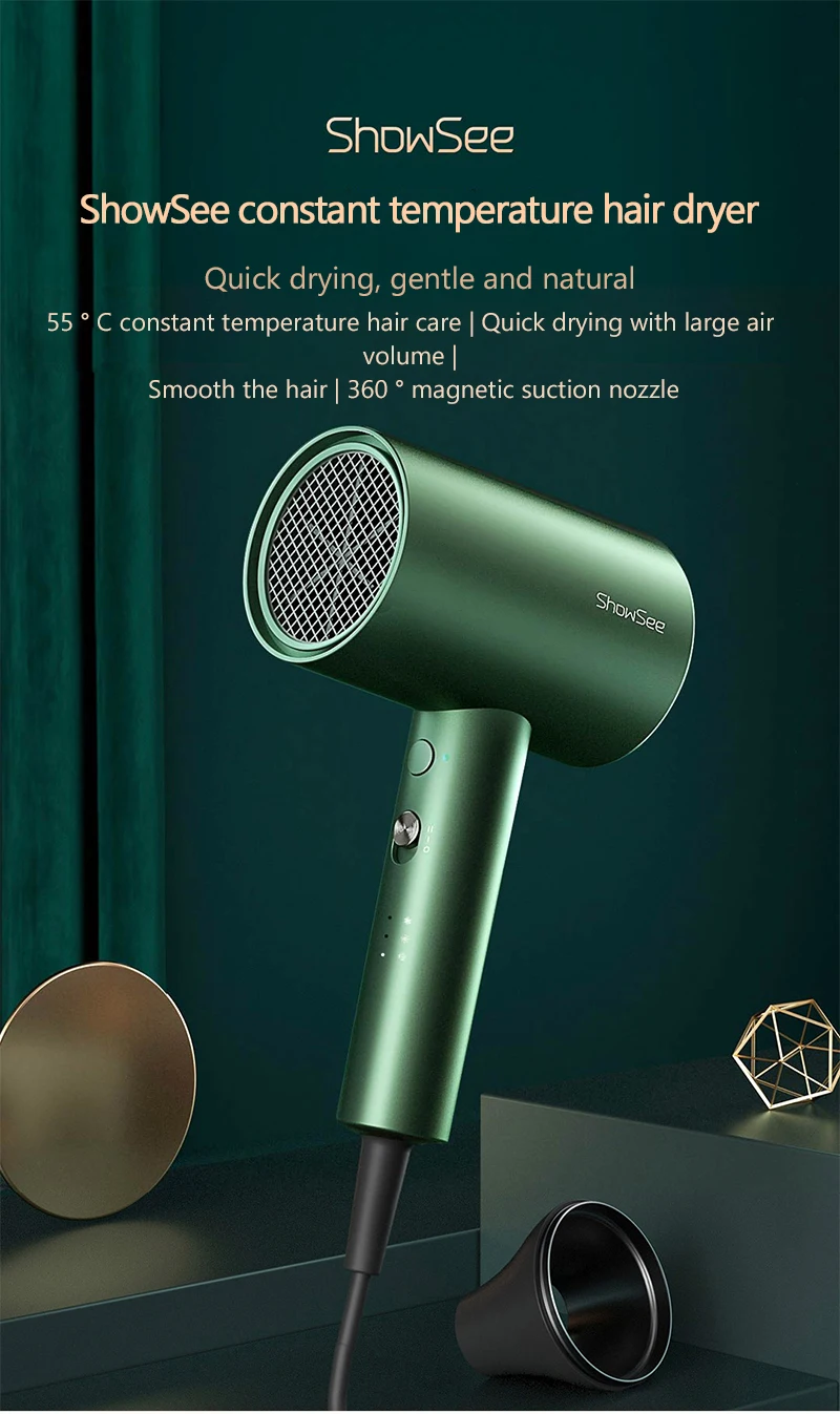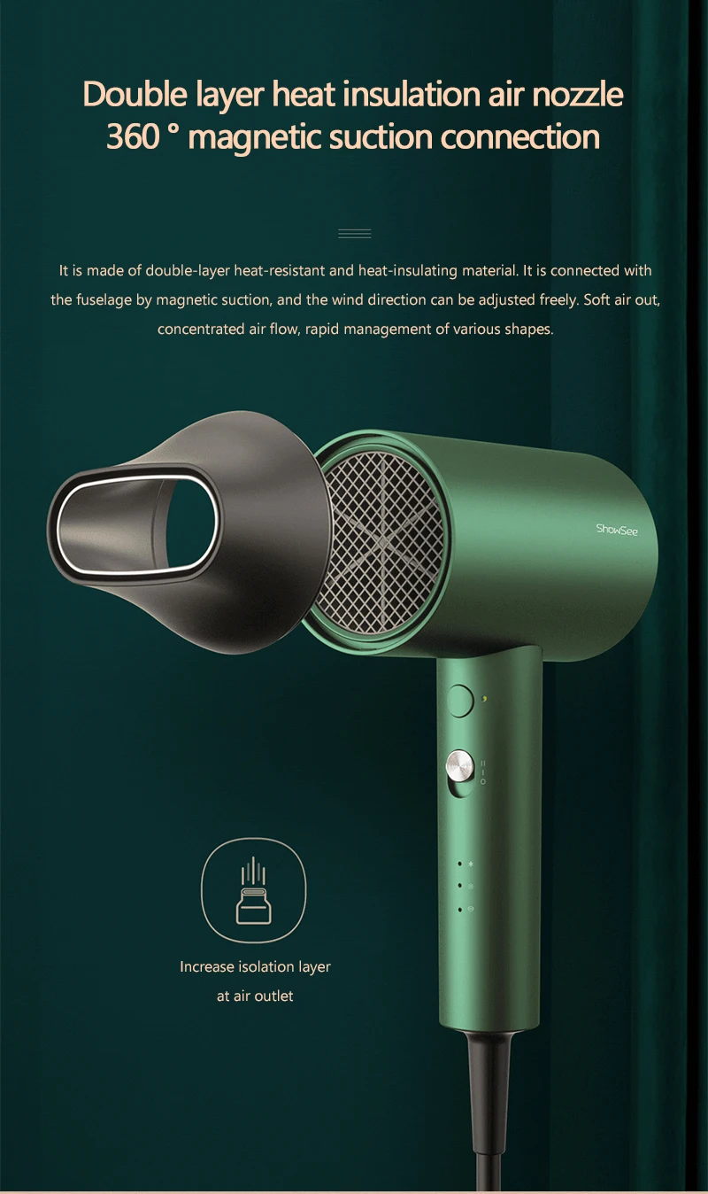 ShowSee Anion Hair Dryer Negative Ion Care 1800W Strong Wind Professinal Quick Dry Portable Home Hairdryers Low Noise A1-W