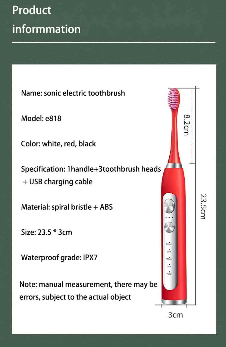 Sonic Electric Toothbrush USB Charger Rechargeable Electronic Portable Ultrasonic Tooth Brush for Adults