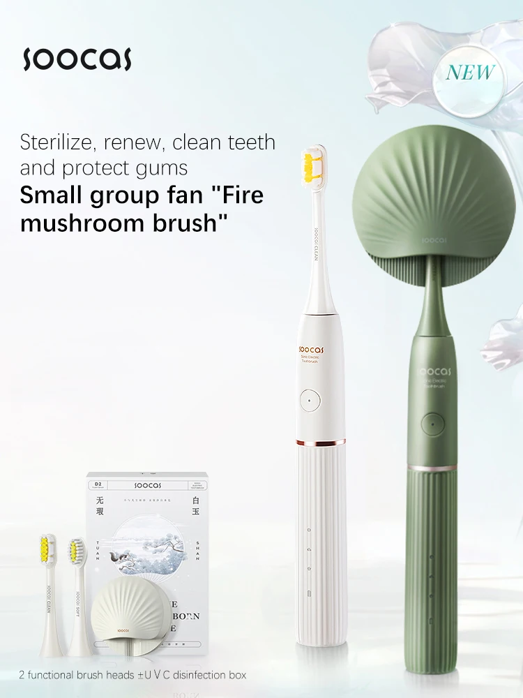 SOOCAS D2 Adult Sonic Electric Toothbrush UVC Sterilization Timer Brush 3 Tooth Care Modes IPX7 Waterproof Type-C Charge Brush
