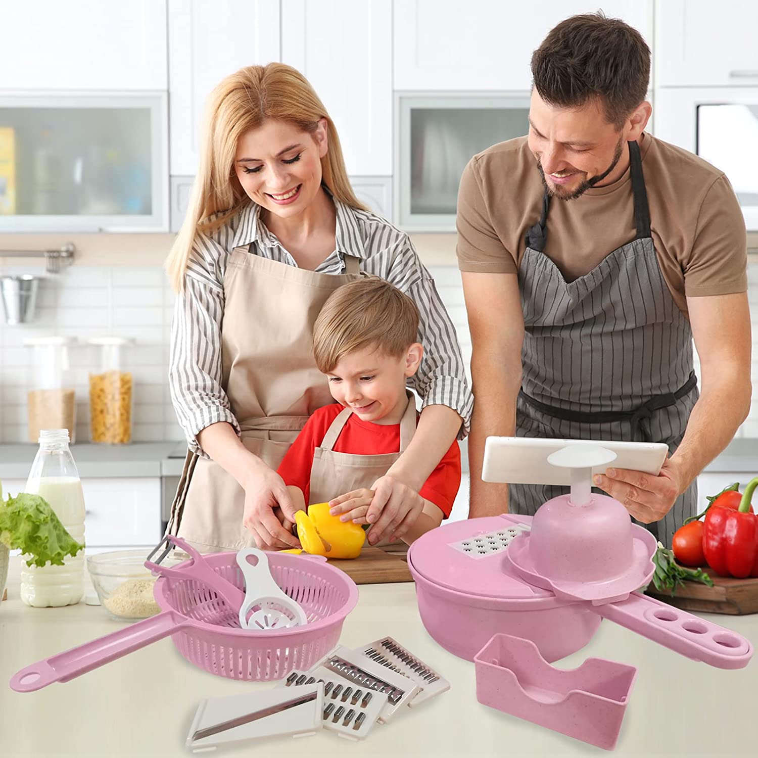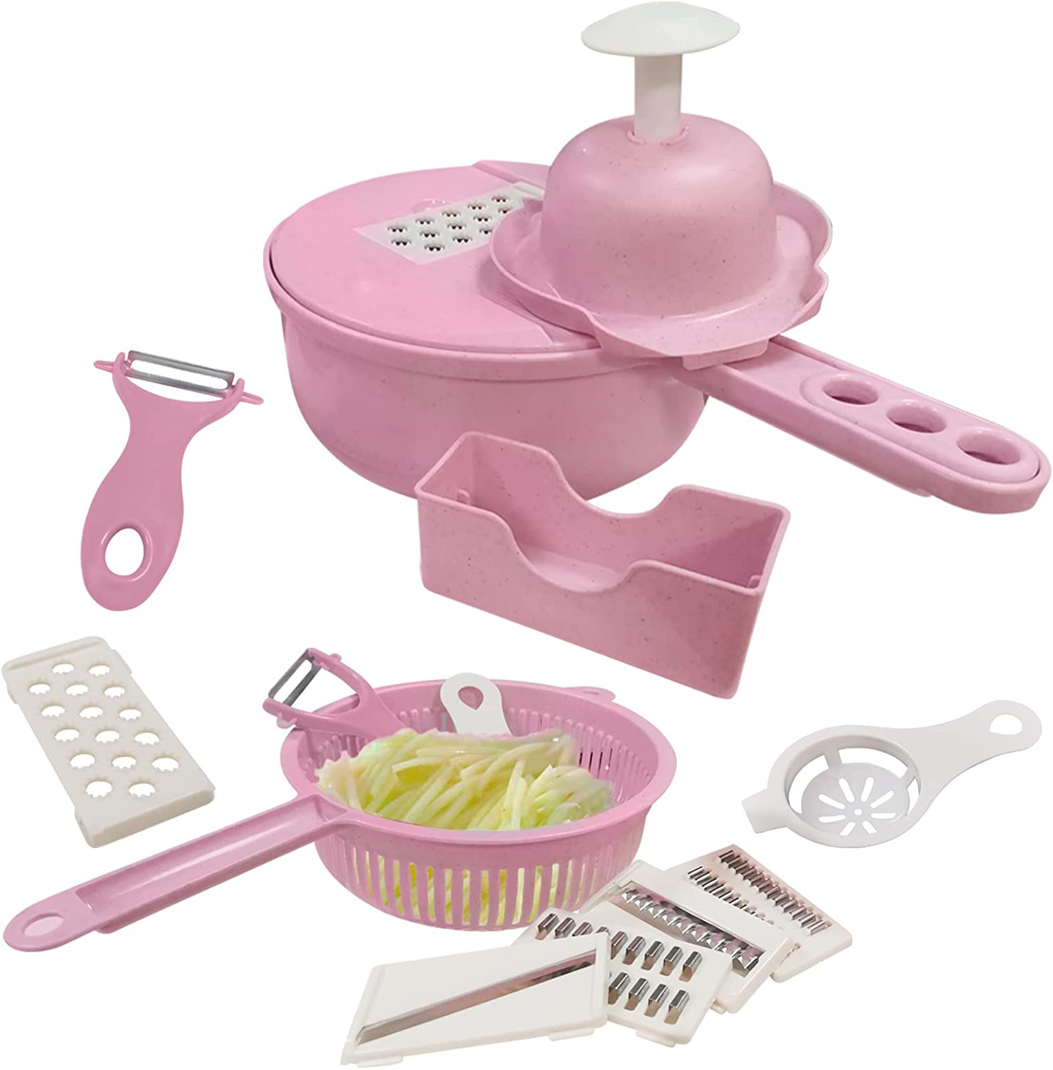 Rich Accessories : This with container mandolin,You could use the vegetable food chopper as food cutter,onion slicer,cheese grater,cabbage slicer,cucumber slicer,tomato slicer,potato slicer and so on.chopper,This kitchen accessories Great convenience for your kitchen life.